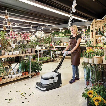 Sweep, scrub and dry in a single pass. Ideal design for scrubbing small spaces quickly. Cord-free and quiet operation. Squeegee width: 14"; Brush type: (1) cylindrical. Brush speed: 1,000 rpm; Voltage: 36 V Lithium. Maximum brush down pressure: 26.5 lb. Package includes: Shelf charger, fast charger, fast charger cord, onboard charger. Package includes standard charger as well as fast charger system. Creates a cleaner environment than mopping. Leaves your floor clean and dry. A user-friendly control panel in the handle is easy and simple to use and scrubbing action is easily engaged by simply placing your hands on the innovative touch points integrated into the handle. Two solution flow settings provide the flexibility of increasing the water flow during extra tough cleaning tasks, ensuring effective cleaning and maximizing productivity. -Sweep, scrub and dry in a single pass. Ideal design for scrubbing small spaces quickly. Cord-free and quiet operation -Squeegee width: 14"; Brush type: (1) cylindrical -Brush speed: 1,000 rpm; Voltage: 36 V Lithium -Maximum brush down pressure: 26.5 lb -Package includes: Shelf charger, fast charger, fast charger cord, onboard charger -Package includes standard charger as well as fast charger system