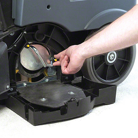 This battery walk-behind sweeper is for both indoor and outdoor use and delivers superior industrial cleaning from a rugged, durable, economical and easy-to-use design. All controls can be accessed from the operator's position, with an ergonomic handlebar and propulsion control bar that provide comfortable, single-hand operation. Simple controls and security are provided via key switch, and single-hand hopper removal and transfer make debris handling quick and efficient. Fast and effective sweeping comes from a direct throw design with side broom options and independent side broom controls on the handle. A simple, standard manual filter shaker keeps filters performing longer, and tools-free service of all routine maintenance items reduces downtime. The sweeper is powered by a 0.9 hp main motor and ships with two batteries and an on-board charger — available in maintenance-free or wet battery options — providing run time up to 3 hours on a single charge. Durable construction, easy servicing, and intuitive operator controls make this walk-behind sweeper an efficient choice for commercial and industrial floor care.