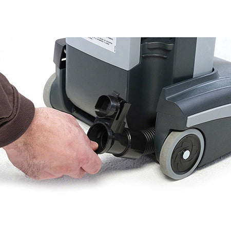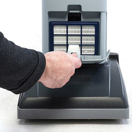 Delivers exceptional cleaning performance in an easy to use, easy to maintain upright vacuum that is designed to withstand stringent environmental requirements. Engineered for durability and productivity, it features a powerful motor: 120 V, 60 Hz, 1000 W, 9 amp, 2-stage; Waterlift: 92"; Airflow: 93 cfm; Brush speed: 2800 RPM. Brush: Dual row, chevron style, nylon w/auto adjustment. Automatic, self-adjusting brush height ensures proper cleaning performance and maximum productivity when cleaning different floor surfaces and makes this machine ideal for medium and low cut piles. Reliable, efficient, and service-friendly, this upright vacuum combines strong suction, rapid brush action and straightforward maintenance to keep carpets and floor surfaces consistently clean.