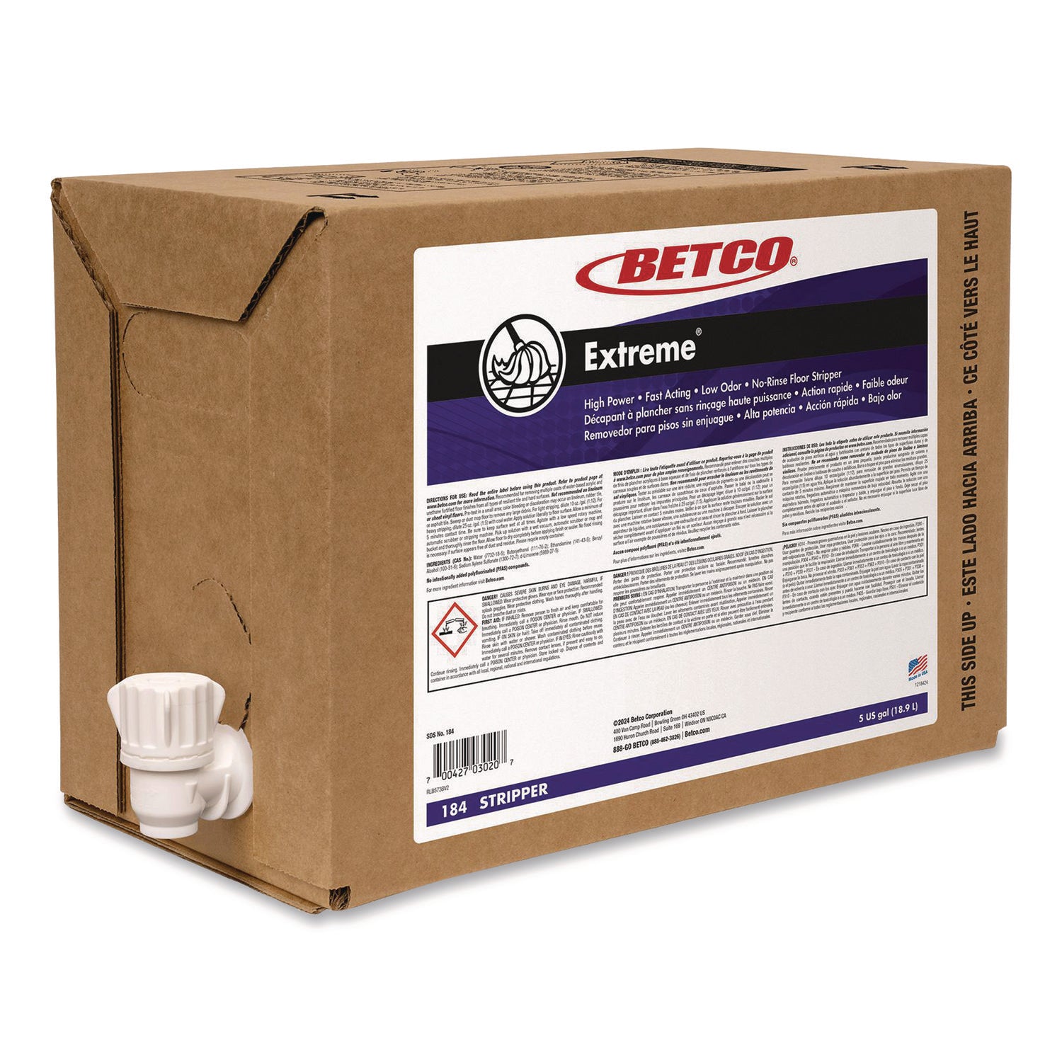 BET184B500 Extreme Floor Stripper, Lemon Scent, 5 gal Bag-in-Box