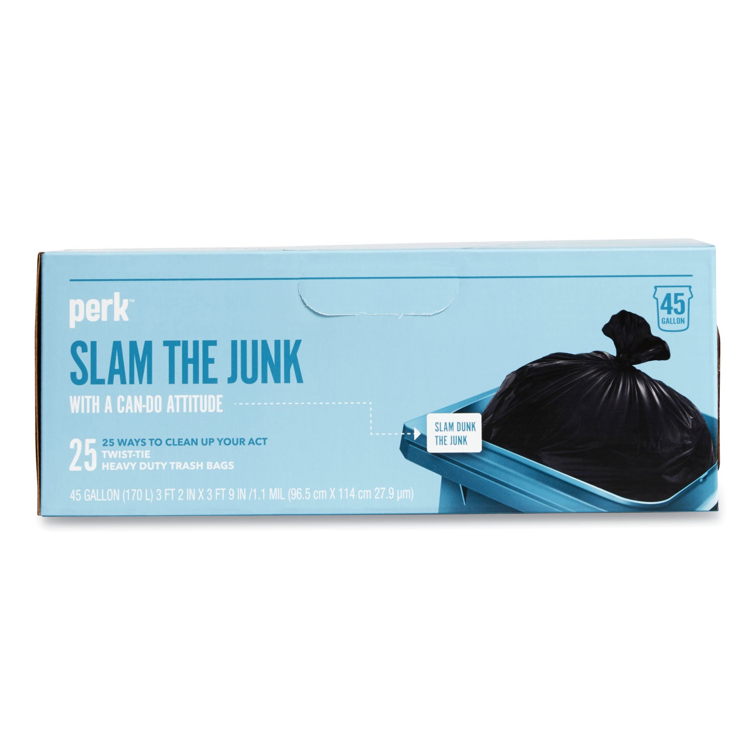 Twist-Tie Heavy-Duty Trash Bags, Open-Face, 45 gal, 1.1 mil, 45" x 38", Black, 25/Box
