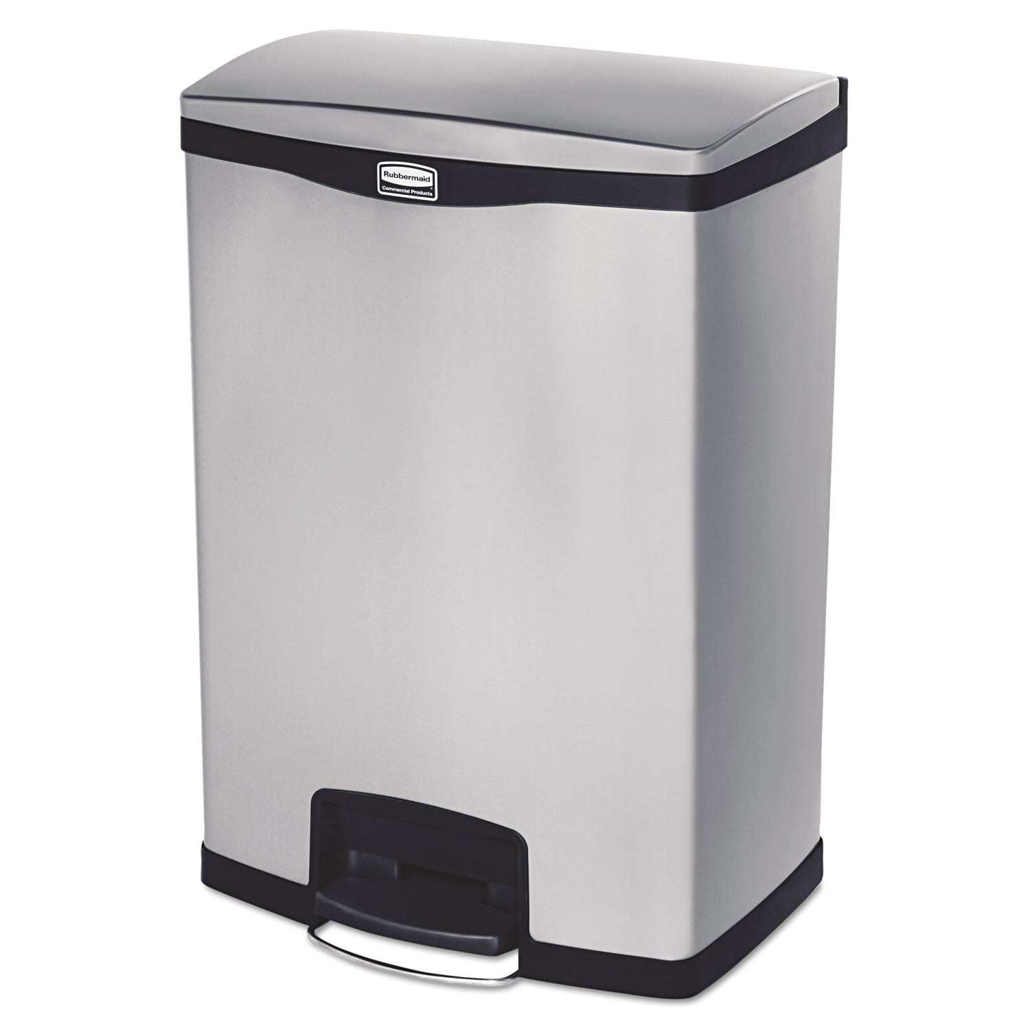 RCP1901999 Slim Jim Stainless Steel Step-On Container, Front Step Style, 24 gal, Stainless Steel, Black