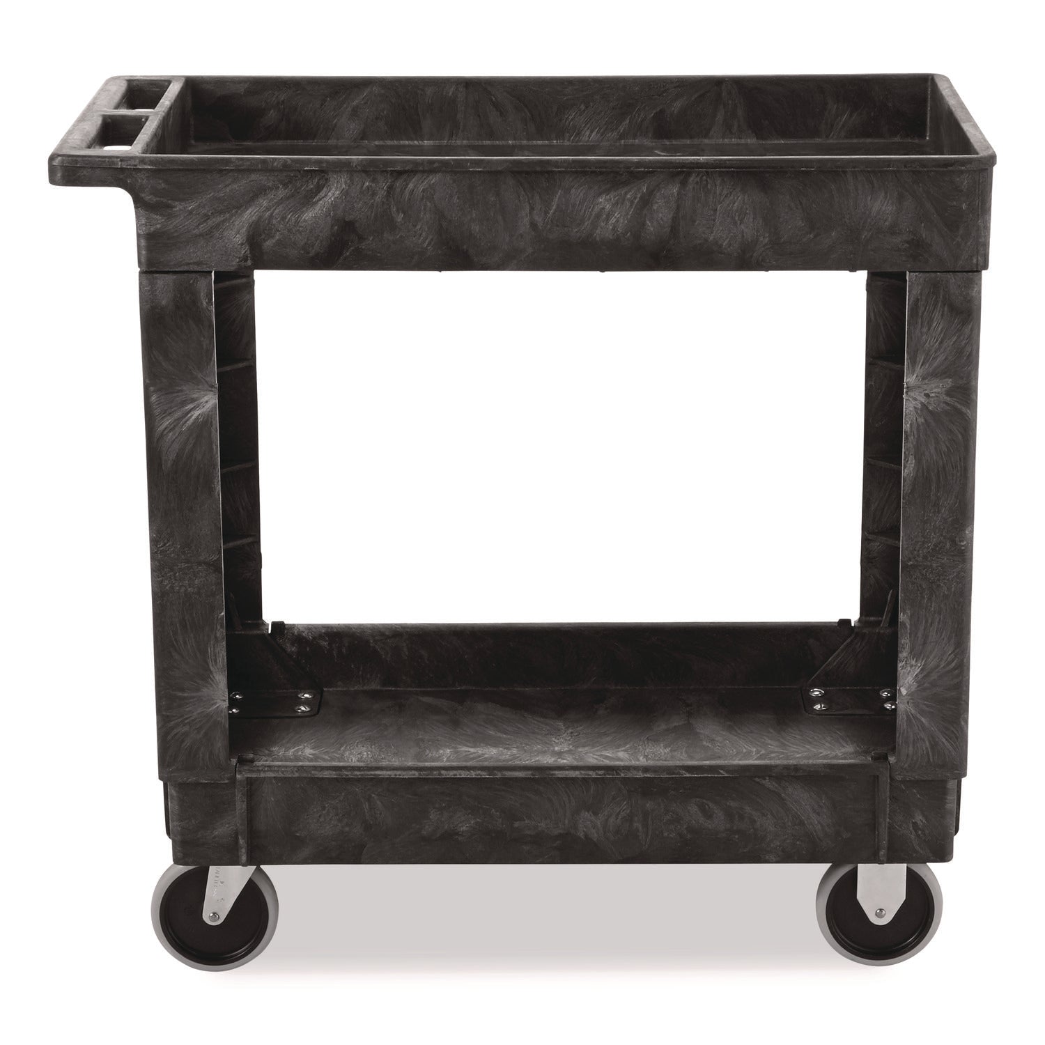 Heavy-Duty Flat-Handle Maintenance/Utility Cart, Plastic, 2 Shelves, 500 lb Capacity, 34.13" x 17.38" x 32.38", Black