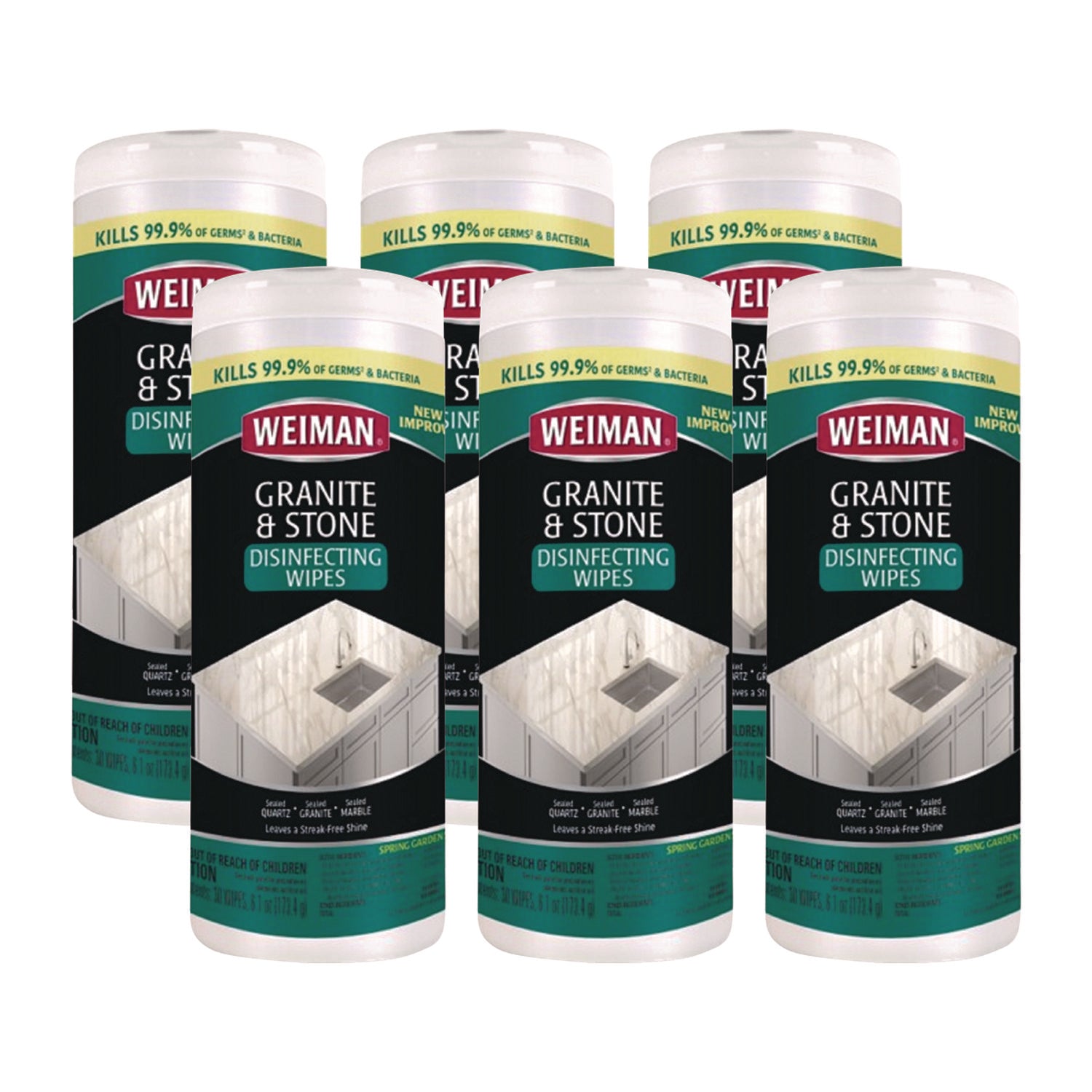Granite and Stone Disinfectant Wipes, 1-Ply, 7 x 8, Spring Garden Scent, White, 30/Canister, 6 Canisters/Carton